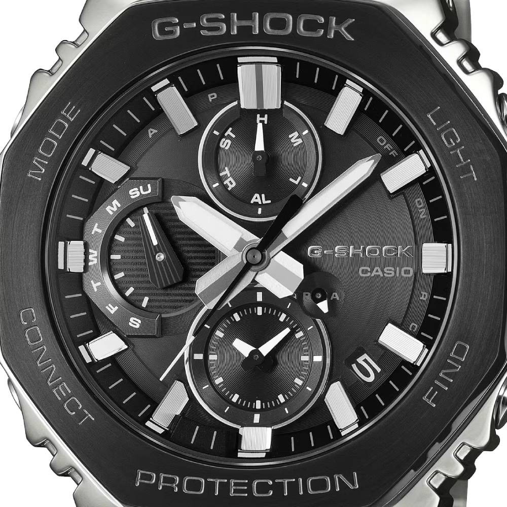 シルバーの中に際立つブラックがG-SHOCKの強さを強調しつつ、幅広いスタイルに合わせやすいモノトーンデザインとなっています。