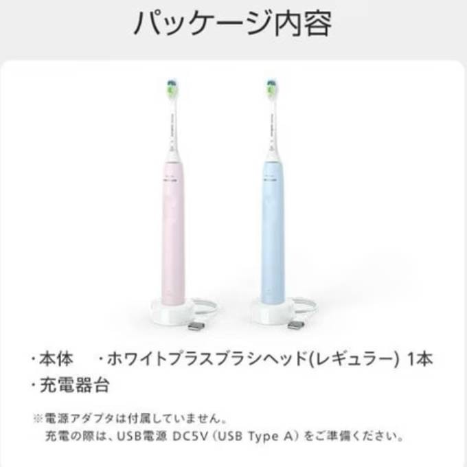 付属品:充電器、ハンドル(2100 シリーズ×1本)、ブラシヘッド(ホワイトプラスレギュラー(ホワイト)×1本)