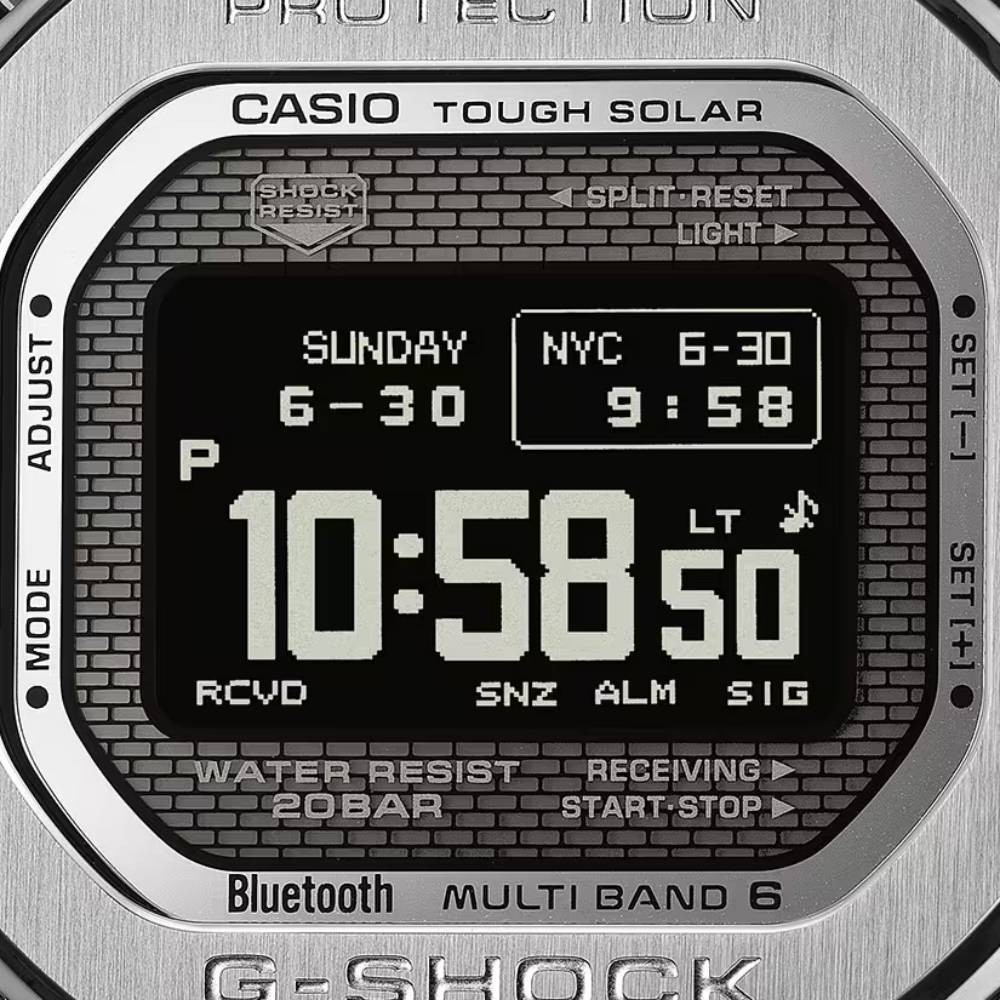 ベゼルとセンターケースを上下で連結した構造を開発。ケースサイドから見える造形が構造の美しさを強調。フルメタルながらG-SHOCKの耐衝撃基準をクリアし、気密性に優れたスクリューバックケースも採用しています。