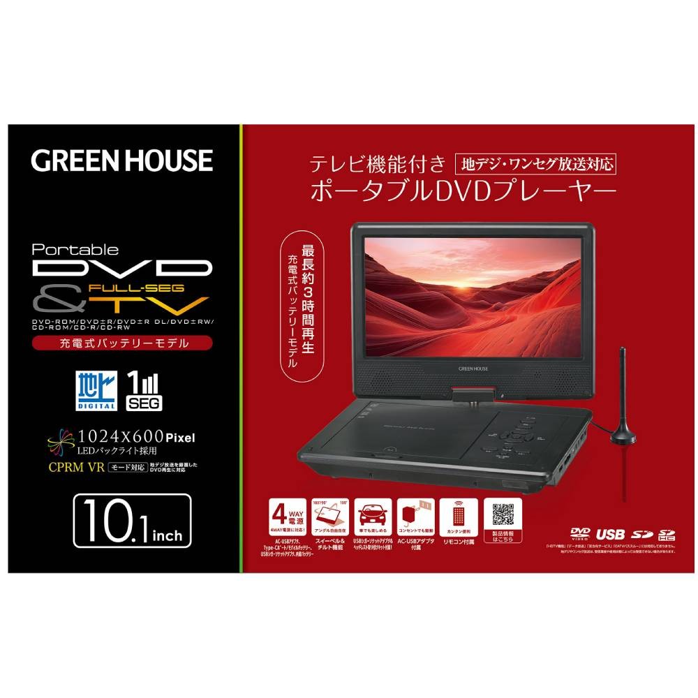 大画面10.1型ワイド液晶(1024×600)搭載のポータブルDVDプレーヤー