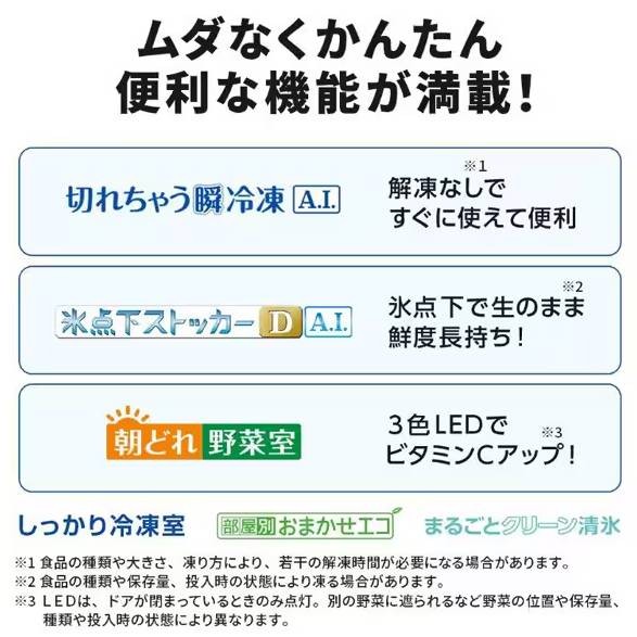 AIが家庭ごとの生活パターンを学習して、部屋別に最適な運転を実施。設定1つで、誰が使ってもラクにムダなくおいしく保存できます。
