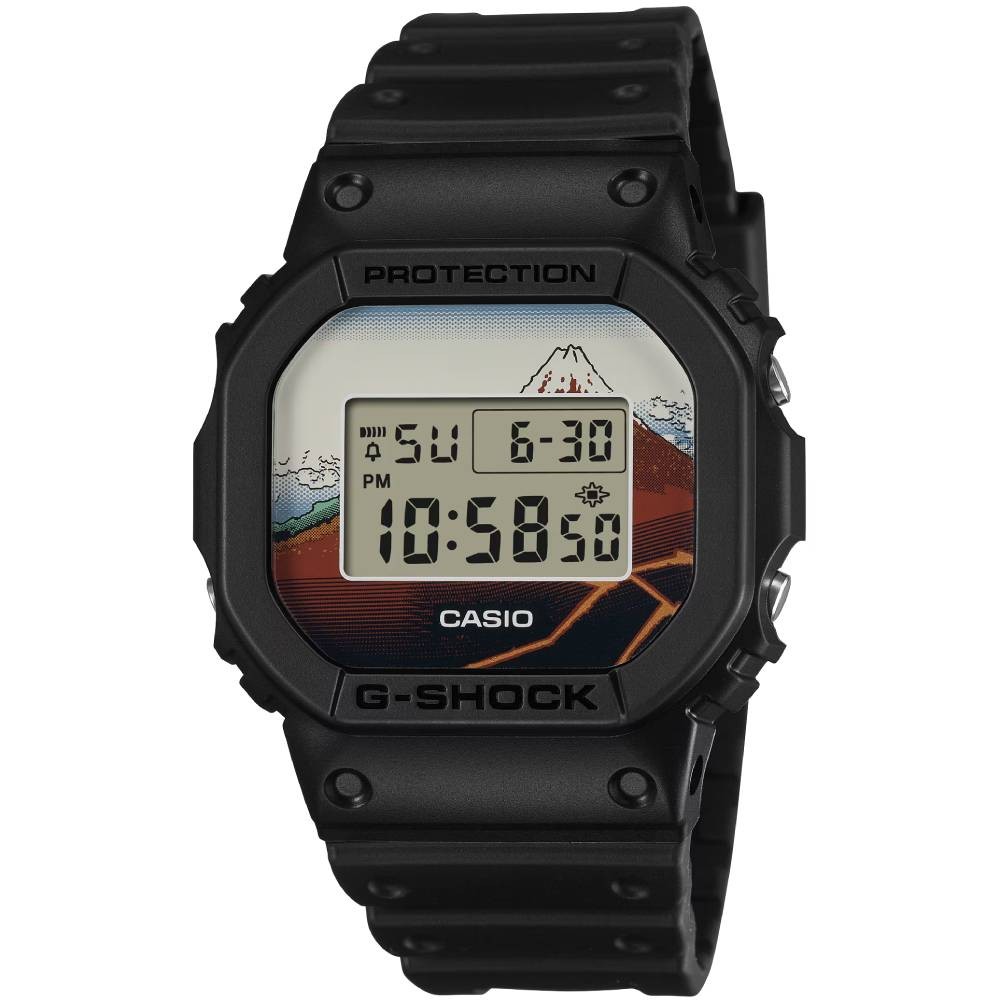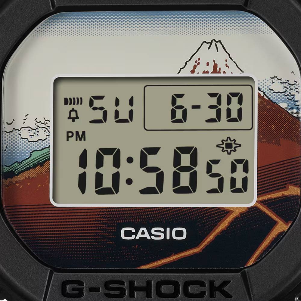ベースモデルにはアイコニックな定番デジタルDW-5600を採用し、文字板には「山下白雨」を大胆にデザイン。LEDバックライト点灯時には文字板と一体となって同作品の雄大さを表現します。裏蓋には漢字で“日本”という文字を刻印しました。