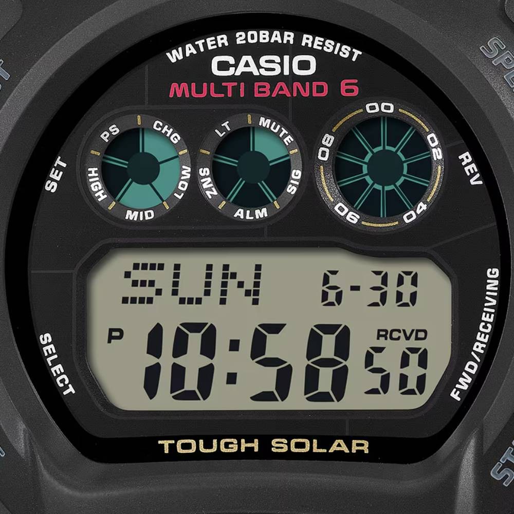 様々なコラボレーションモデルに採用され、ストリートファッションなどで人気のDW-6900に世界6局の標準電波を受信するマルチバンド6を搭載した人気モデルです。