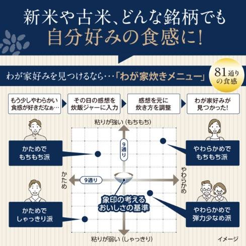 ご家庭ごとの好みの食感に応える「わが家炊き」は使い方も簡単。前回食べたごはんの感想を回答するだけで炊き方を微調整し、好みの食感に進化させます。