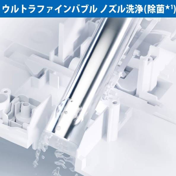 ウルトラファインバブル水のミスト噴射で便器の黒ずみ(カルキ成分)を抑制・除去。直径 1μm 未満のウルトラファインバブル水で洗浄するので、ノズルの穴の周辺など汚れが残りやすい細かな部分までしっかりキレイに?毛穴や皮膚と汚れのすき間に入り込み、汚れを落とすからさらにおしりを清潔。