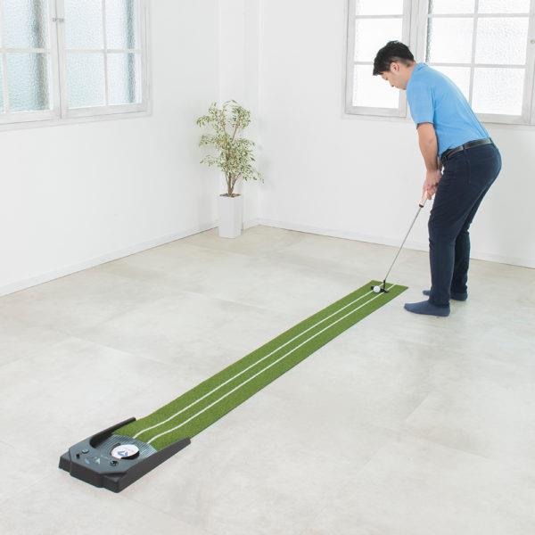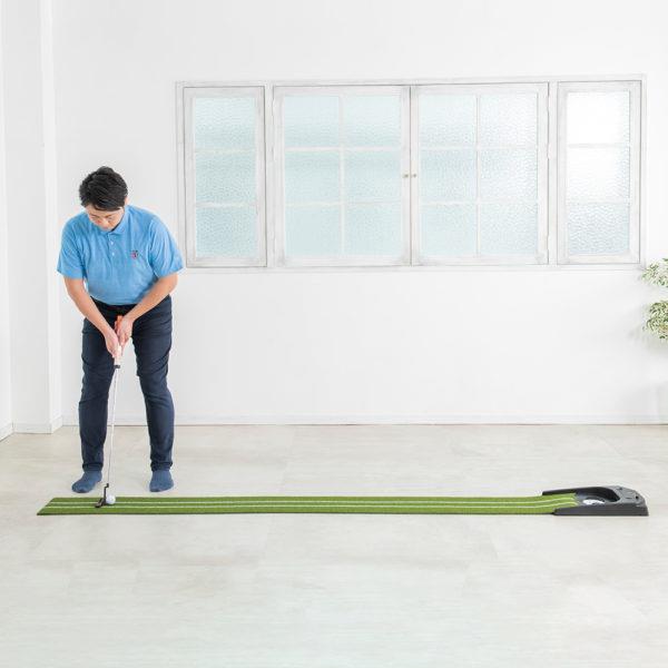 本品の最大長に合わせた約2.5mのパット練習だけでなく、実際のコースで緊張する1m程度のショートパットも繰り返し練習できます。